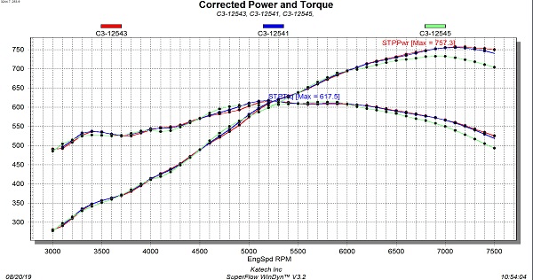 E85, 13.5:1 CR: 730HP/617TRQ with MSD intake at 7000RPM, 757HP/617TRQ with Comp LSXHR intake at 7300RPM